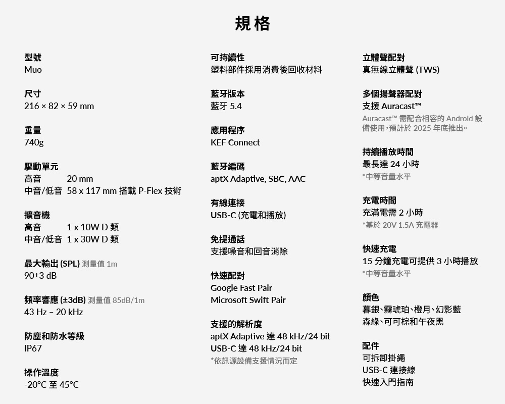 【KEF】 Muo 便攜式藍牙HiFi 揚聲器 藍牙喇叭 IP67 藍芽5.4 鋁合金材質