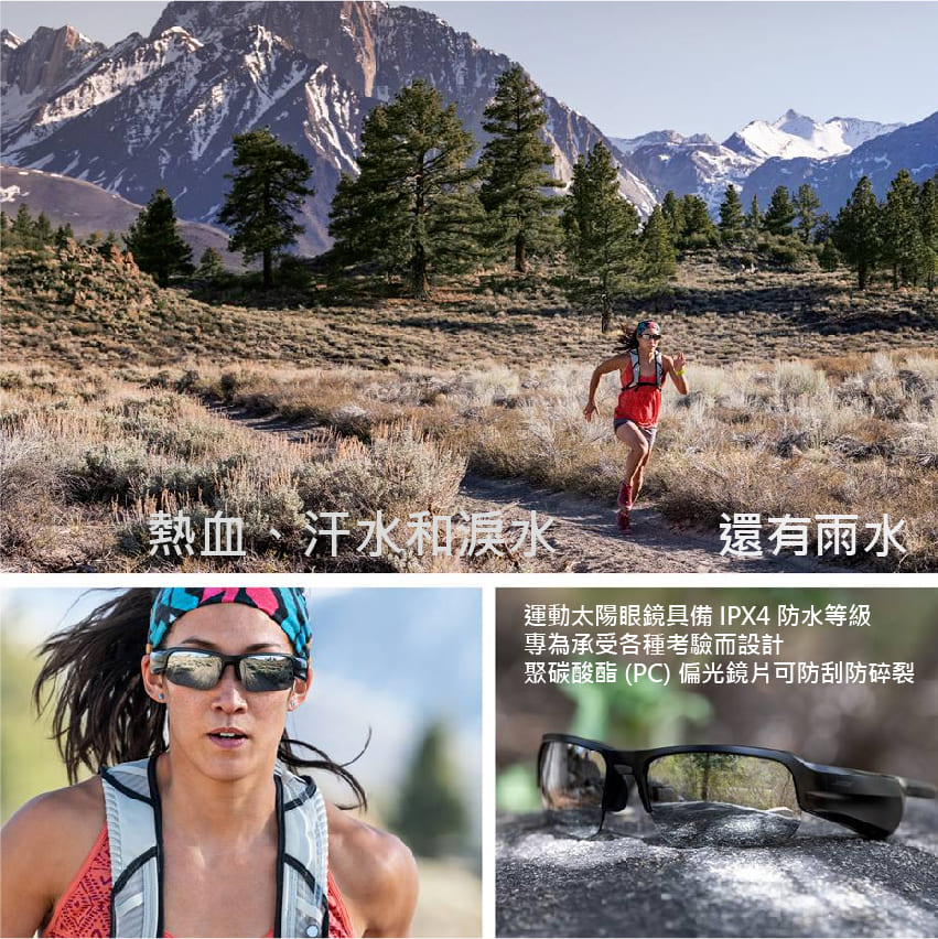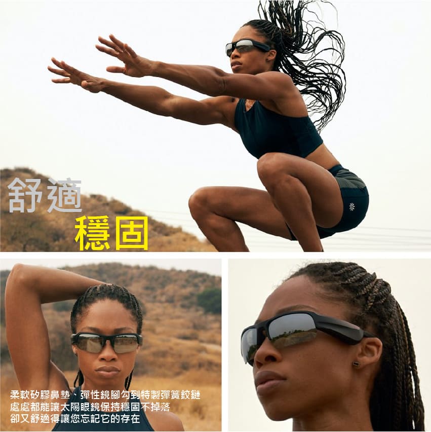 ● Bose 太陽眼鏡運動款搭載特別設計的 Bose 揚聲器 (分別内嵌於兩邊鏡腳),所播放出的聲音比其他音樂太陽眼鏡還要響亮深沉