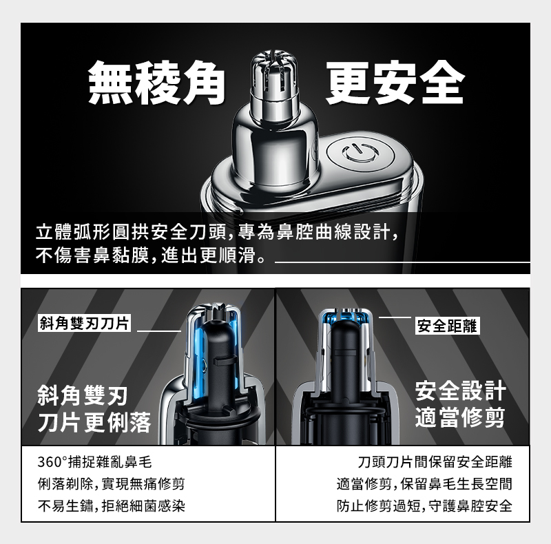 斜角雙刃刀片,360度捕捉雜亂鼻毛