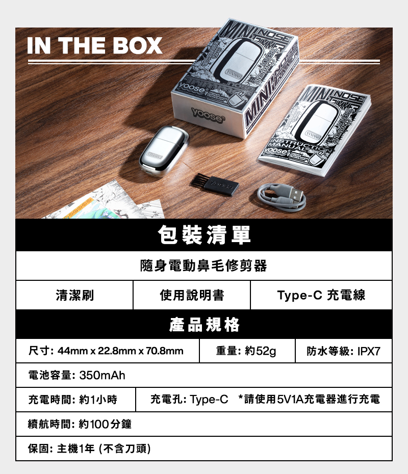 【 yoose 有色】N1-S 全合金電動鼻毛修剪器(五色)