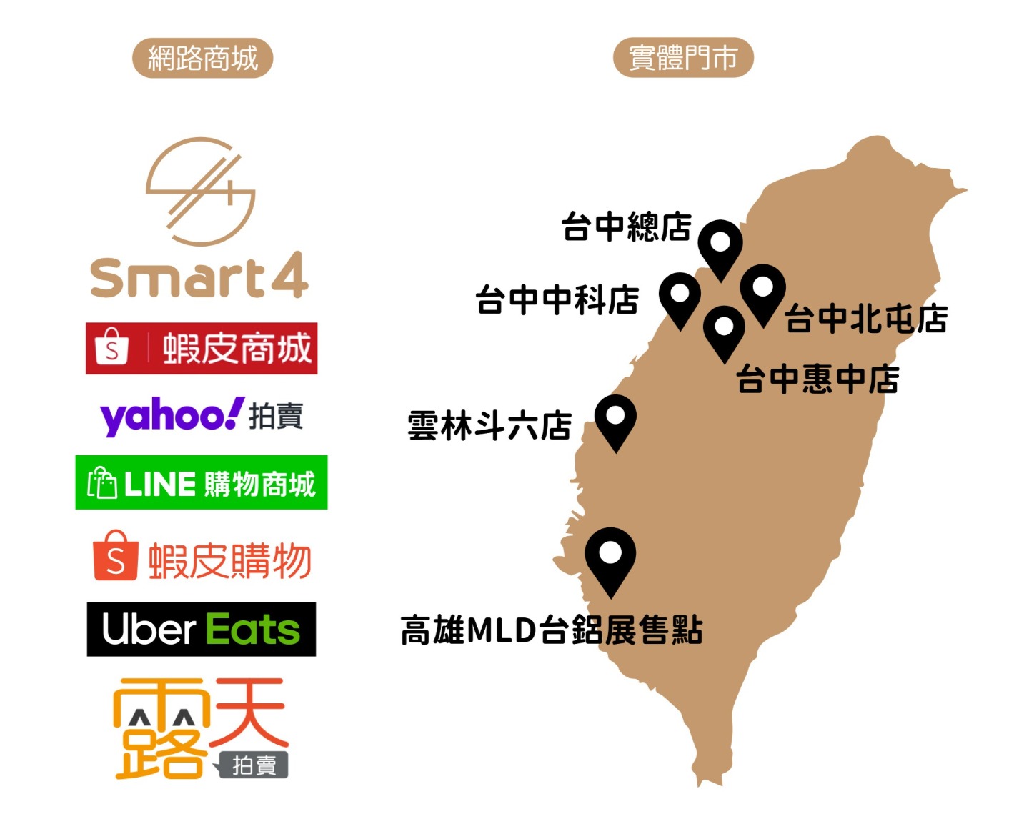 除了自有電商平台外,亦進駐多家知名網路商城,並於全台設有多間實體門市,打造線上線下無縫服務體驗。