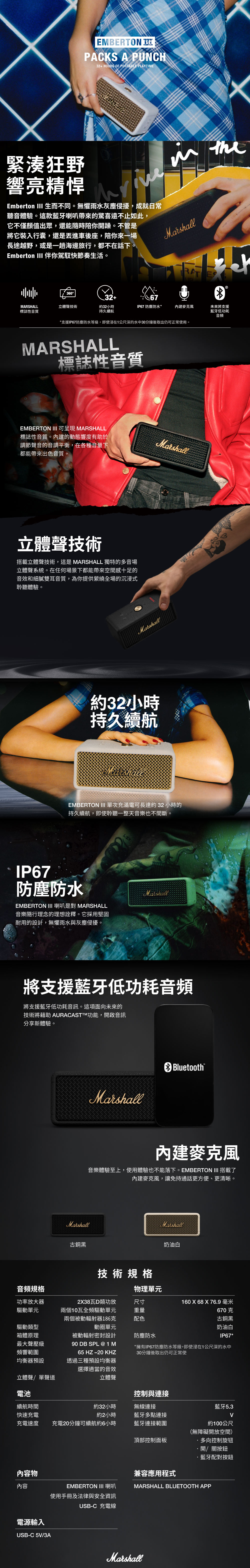 【Marshall】EMBERTON III 三代攜帶式藍牙喇叭 2025新色