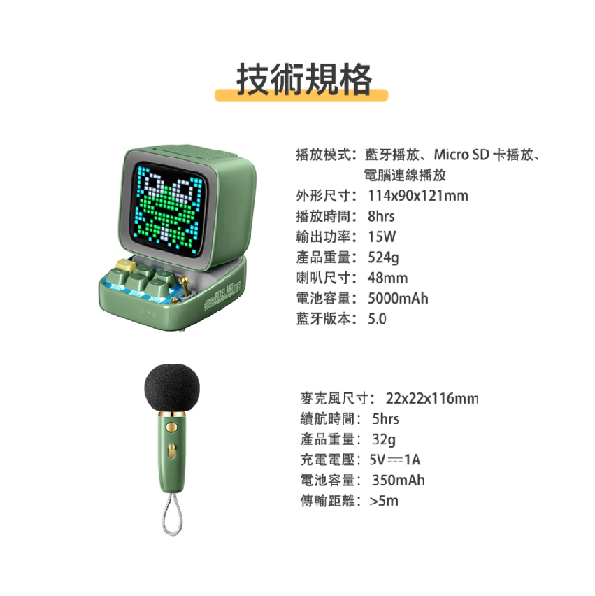 【Divoom】Ditoo Mic像素麥克風藍牙喇叭