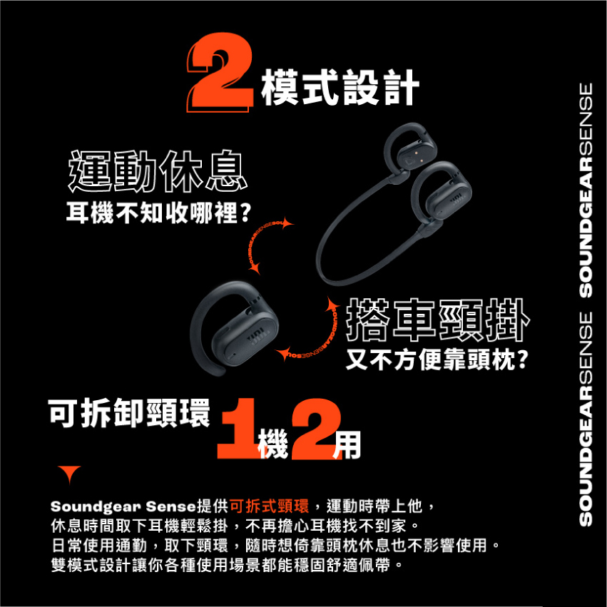 ● 全球首創雙模式佩戴,頸環可拆卸