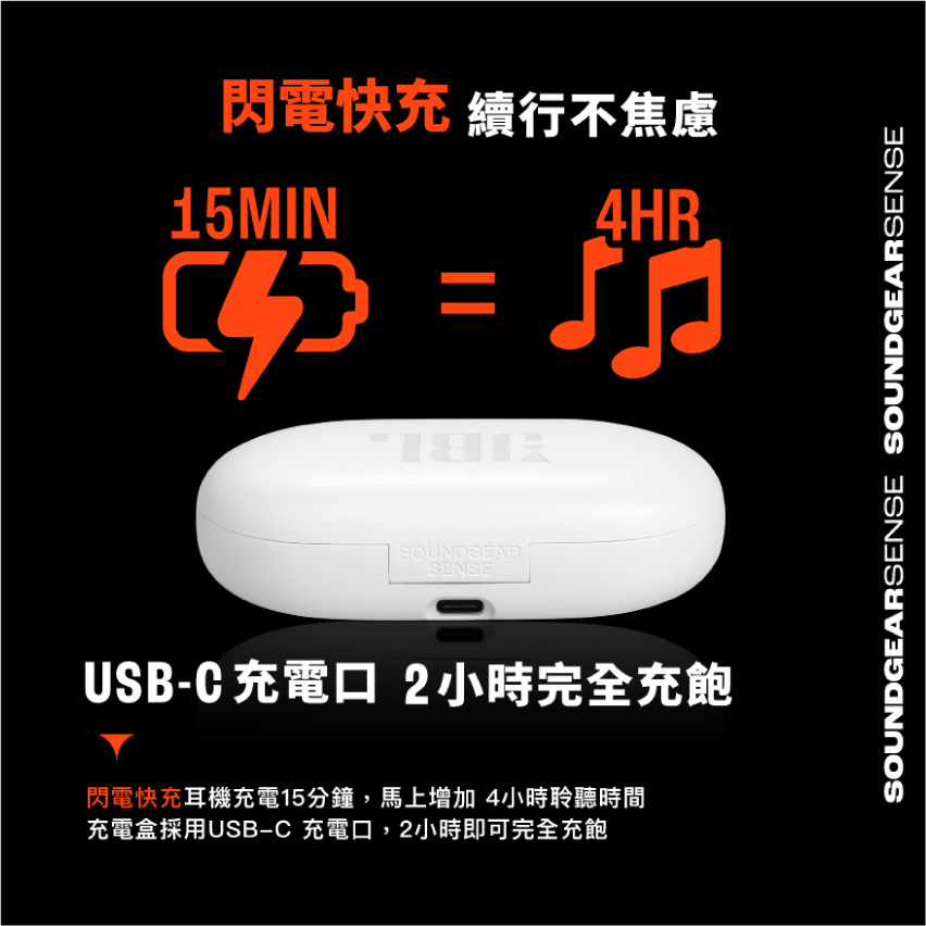 ● 15分鐘快速充電,續聽4小時
