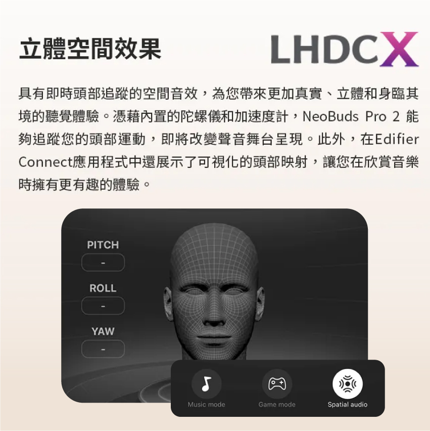 ● LHDC X 空間音訊 靈敏頭轉偵測