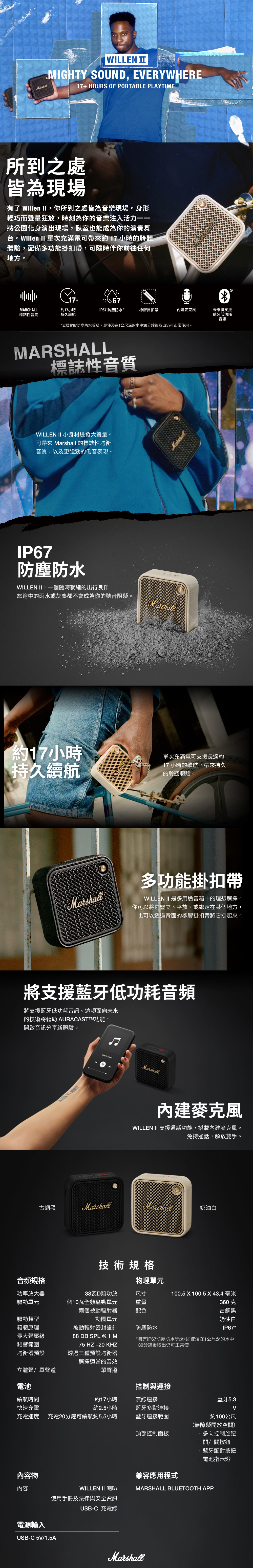 【Marshall】WILLEN II 攜帶式小型藍牙喇叭