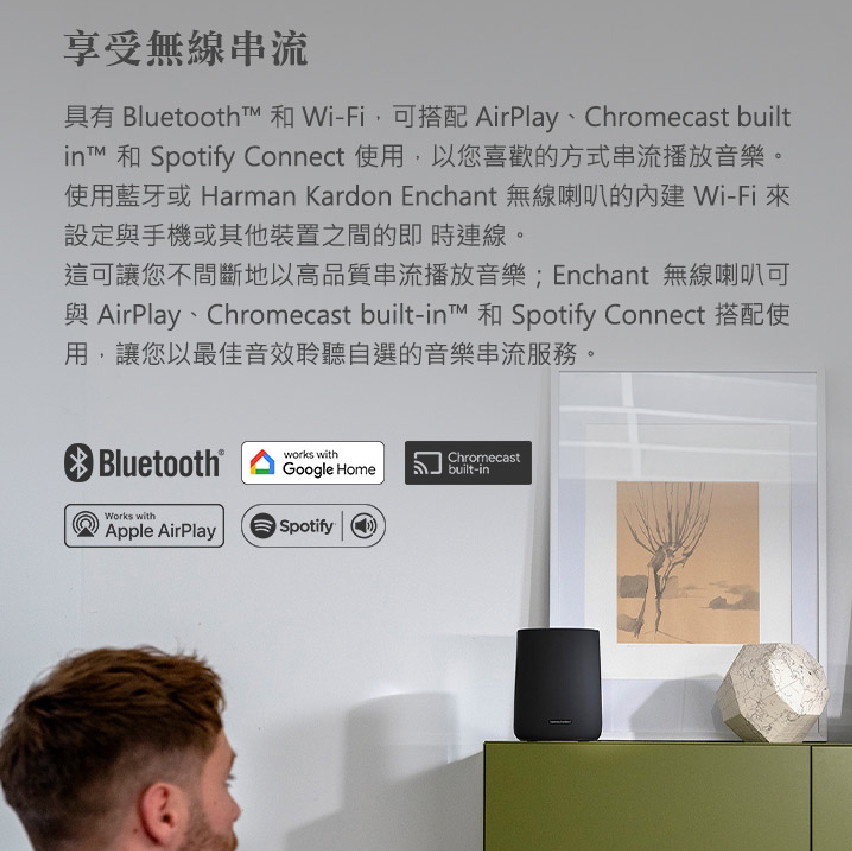● 可搭配 AirPlay、Chromecast builtin™ 和 Spotify Connect 使用