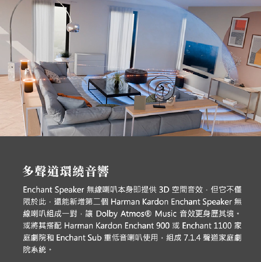● 多聲道環繞音響 可搭配Enchant 1100/900 系列作為後環繞使用 加上Sub重低音