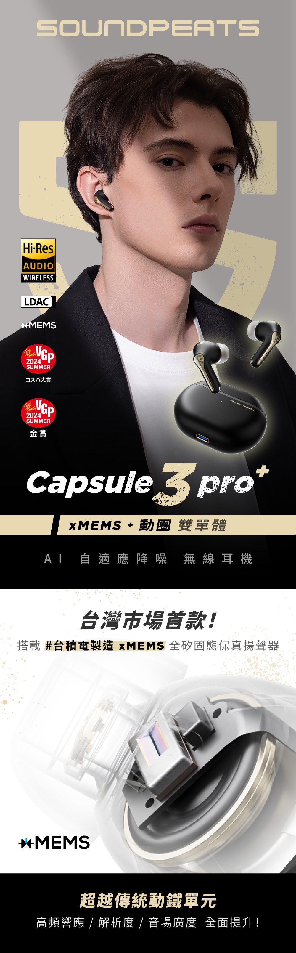 【SOUNDPEATS】Capsule3 Pro+ 台積電製造xEMES 降噪AI真無線耳機