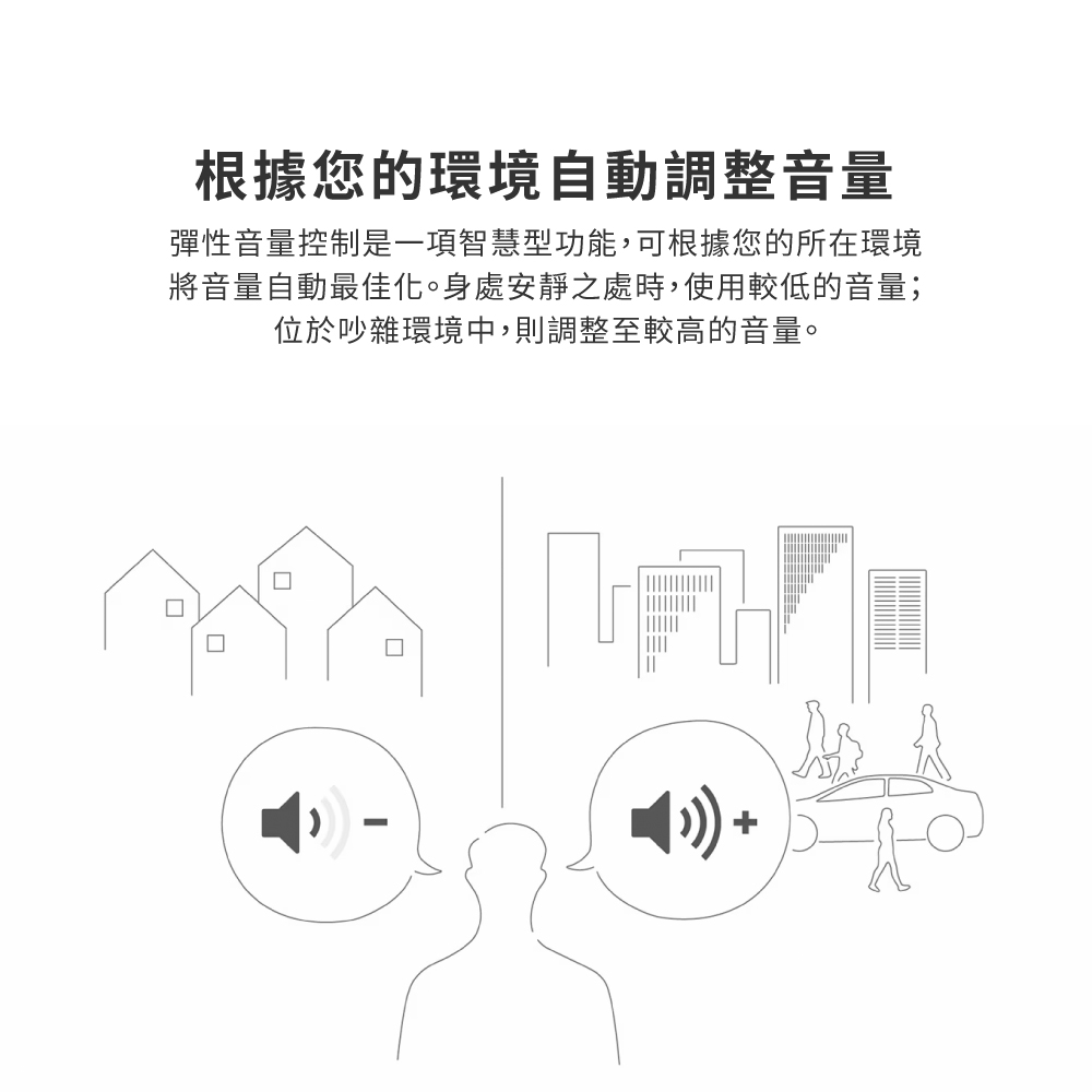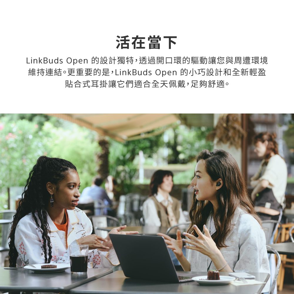 - 具有通透音效的開放式環狀設計,串連您的線上世界和現實生活