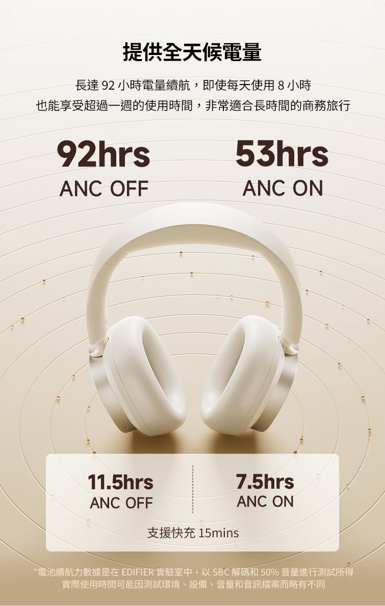 .超長續航力 92H |充電時間:2.5H|快充 15m 續航 11.5H