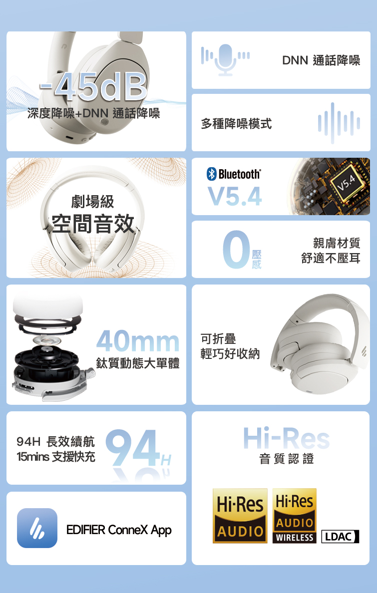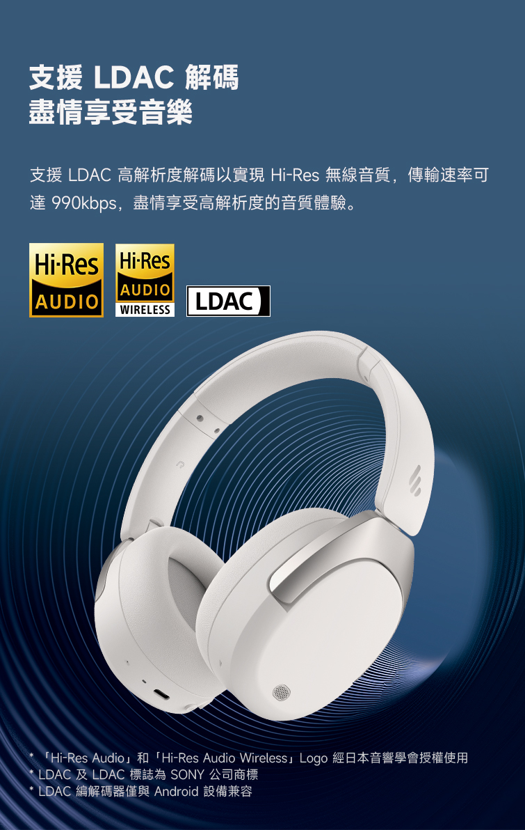 .Hi-Res 雙金標認證;支援 LDAC 高清晰解碼;藍牙 5.4