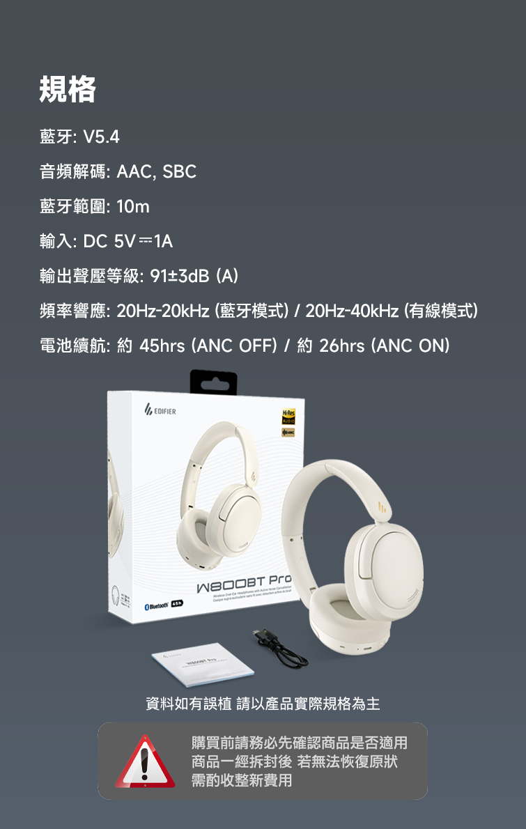 【EDIFIER】W800BT PRO 無線降噪耳罩耳機