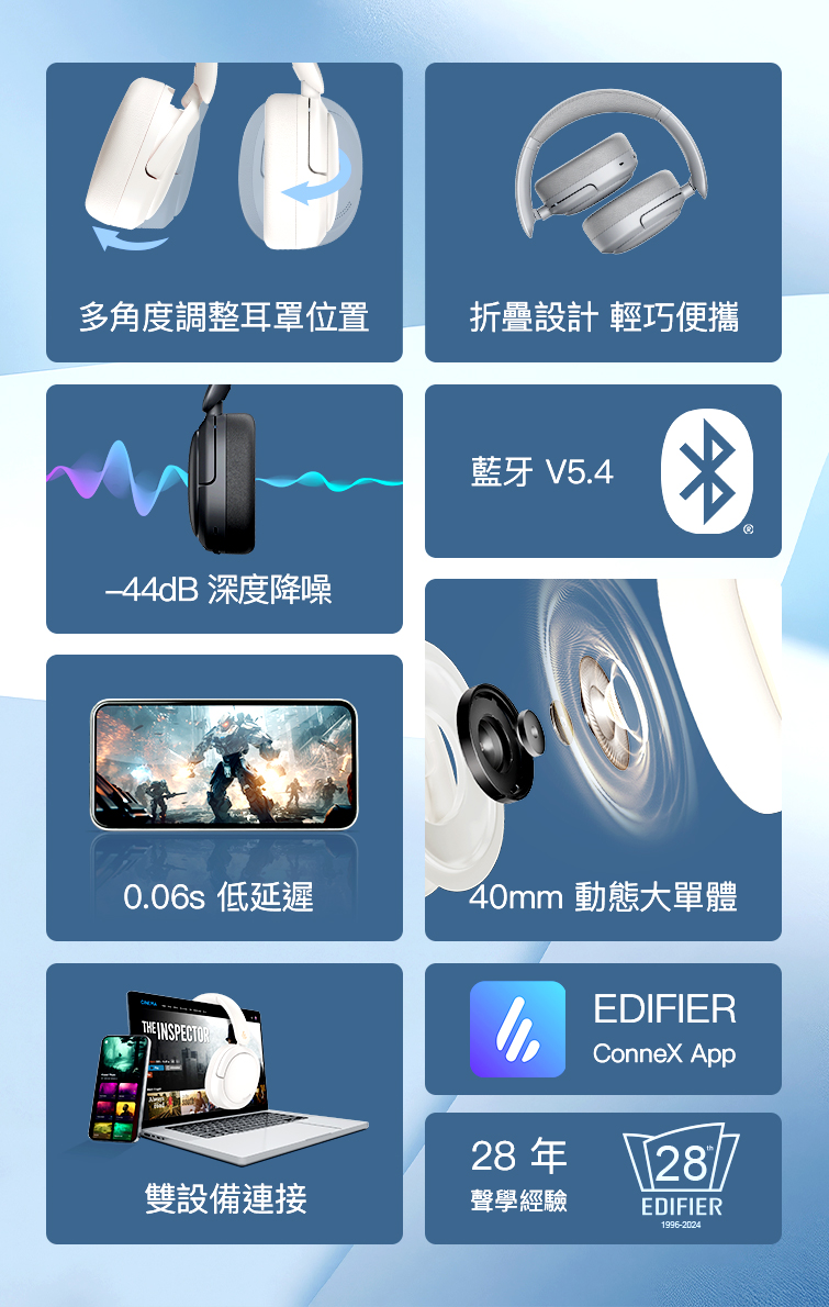 .專利耳罩 戴眼鏡零壓感|雙設備連接|摺疊收納
