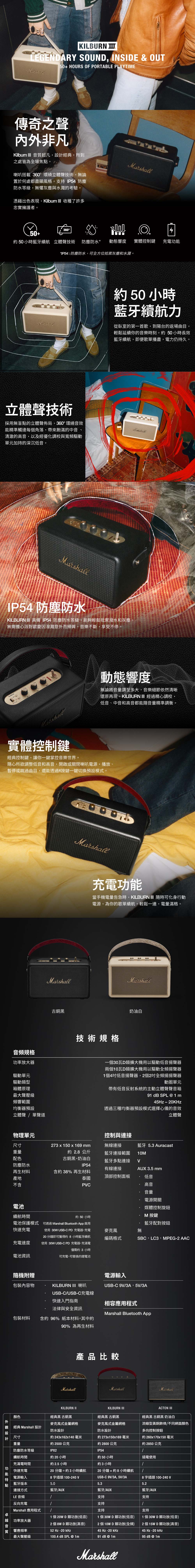● 支援Marshall App . IP54防塵防潑水 . USB-C 快充