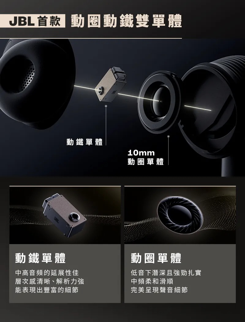 ● 首款動圈動鐵雙單體無線降噪耳機,沈浸式體驗最佳音質